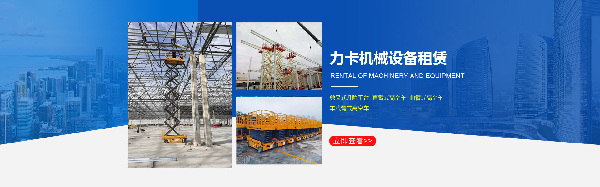 洛陽力卡機械設備租賃有限公司是一家從事高空作業平臺租賃的企業。公司現有6-12米剪叉式升降平臺、16-20米曲臂式高空車、20-58米直臂式高空作業車、自行越野剪叉車等,車輛新、型號齊全、可滿足各種高度、各種環境的高空作業。公司全部采用品牌設備安全又可靠。